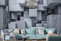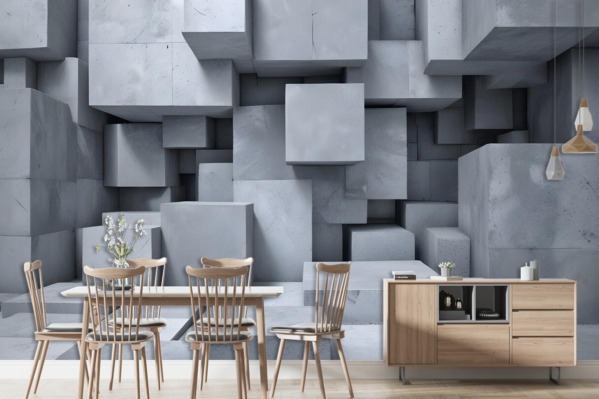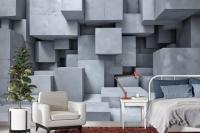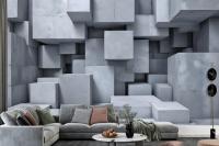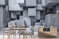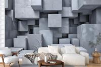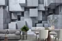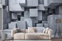 3D Look Concrete Style Gray Abstract Cubes Wallpaper Mural