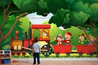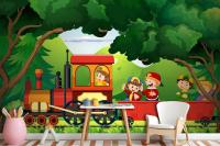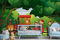 A Kids In A Train With Natural Scene Wallpaper Mural