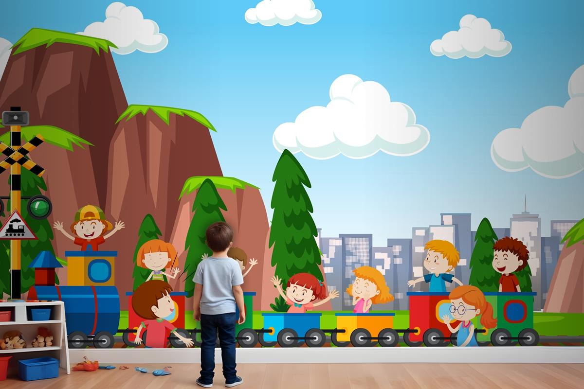 Active Boys And Girls Playing Sport And Fun Activities Outside Wallpaper Mural