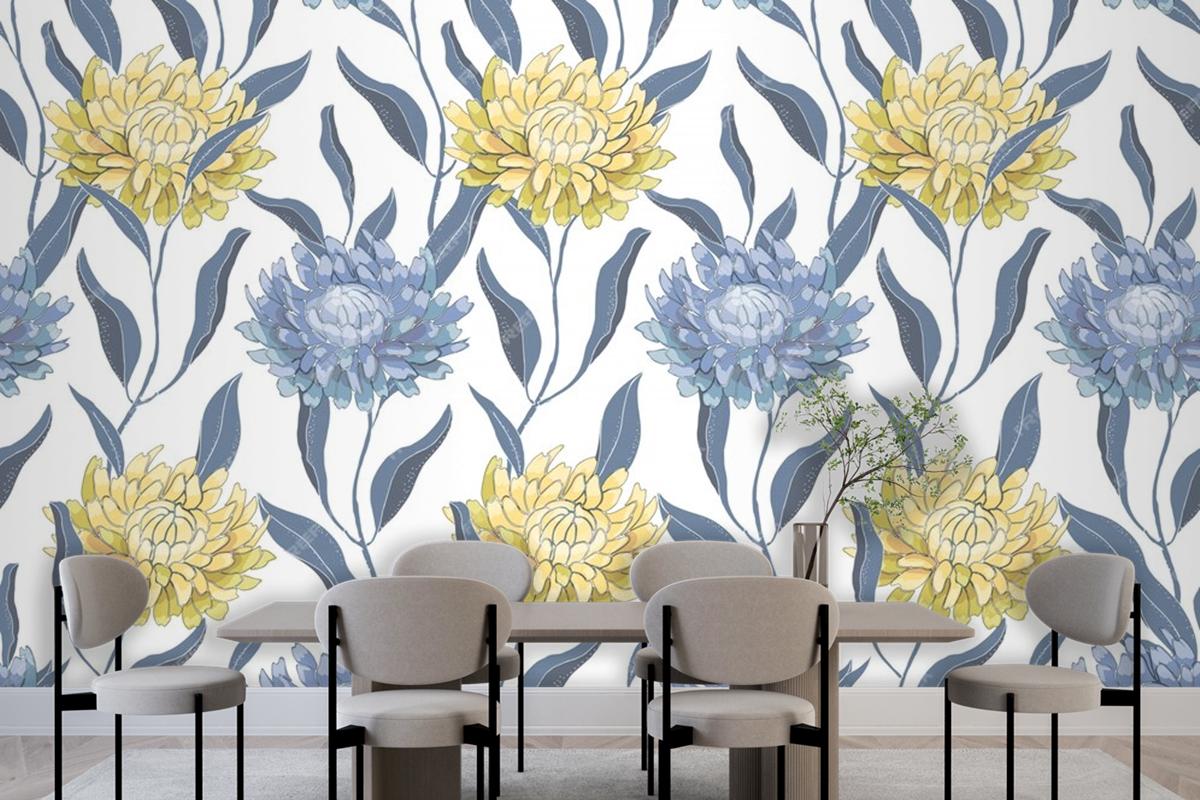 Art Floral Seamless Pattern With Chrysanthemums Wallpaper Mural