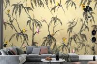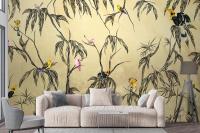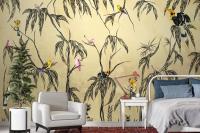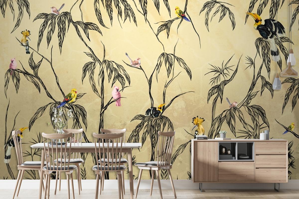 Bird In The Tropics On A Textured Beige Wallpaper Mural