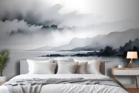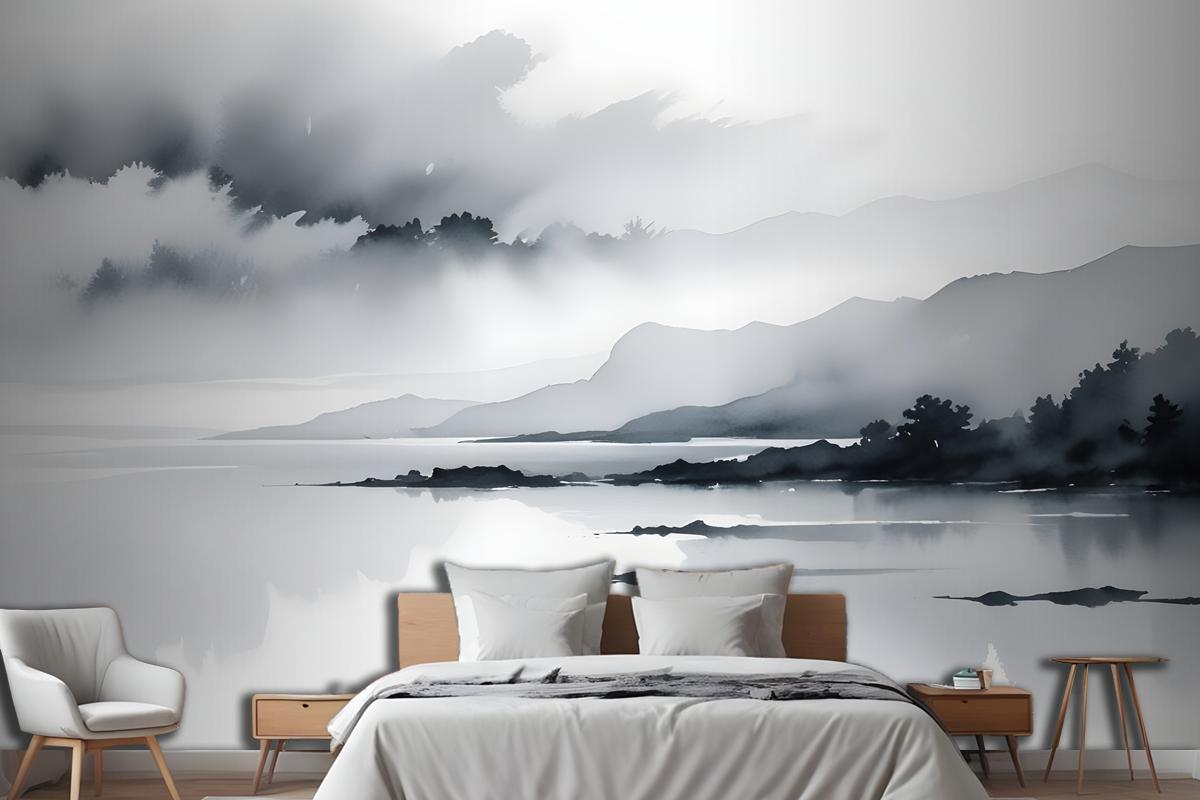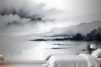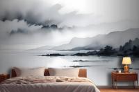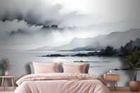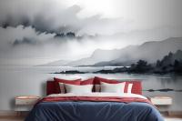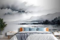 Blue Gray Watercolor Lake Landscape Wallpaper Mural