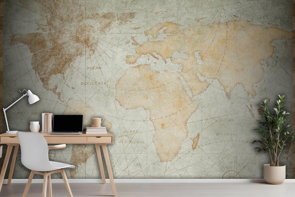 Blue Worn Vintage World Map Wallpaper Mural