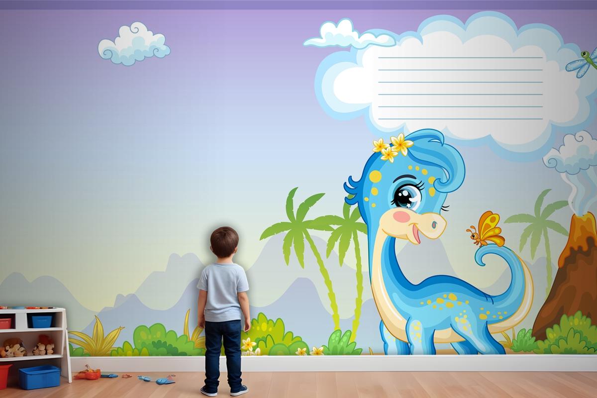 Cover For Notebook With Cute Dinosaur Blue Diplodocus Wallpaper Mural