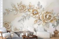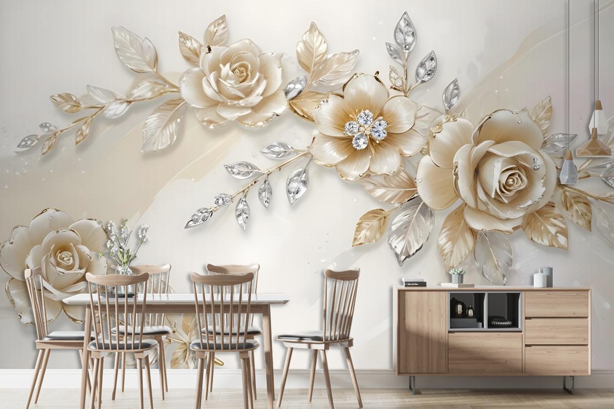 Cream Swarovski Rose Floral Bedroom Wallpaper Mural