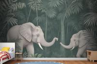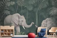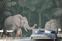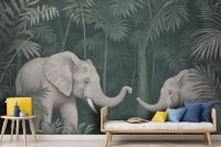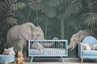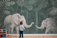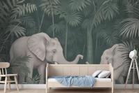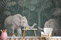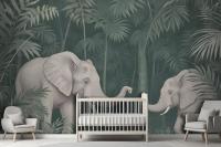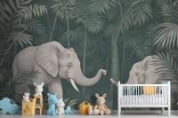 Cute Elephants On The Tropical Jungle Kids Wallpaper Mural