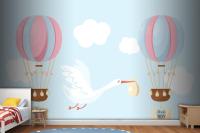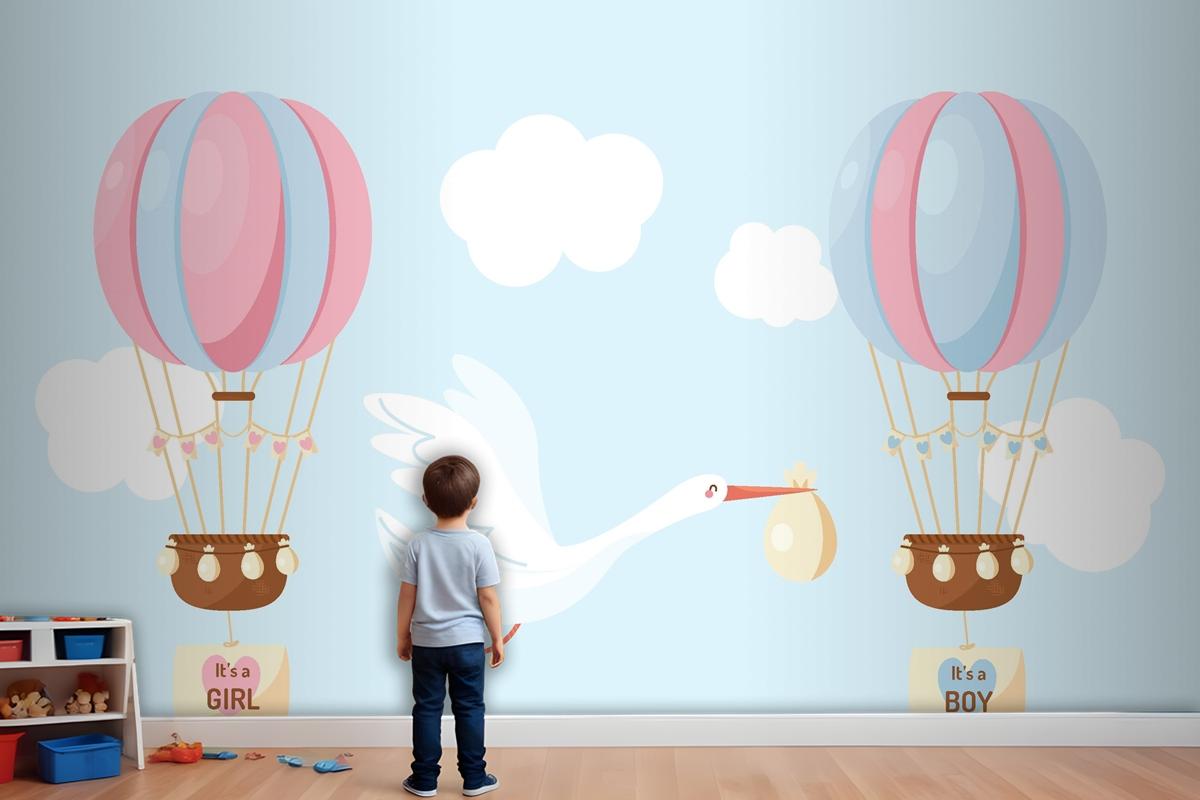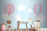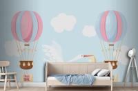Cute Flat Design Blue Pink Balloon Wallpaper Mural