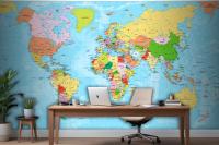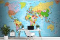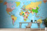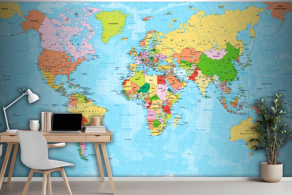 Detailed Political World Map With Capitals Wallpaper Mural