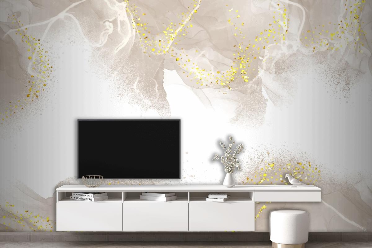 Elegant Hand Painted Neutral Alcohol Ink Living Room Wallpaper Mural
