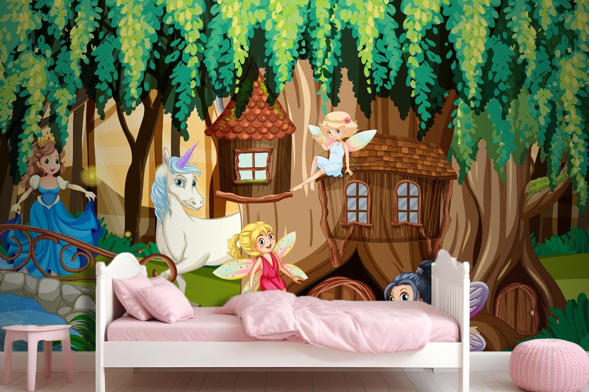 Fantasy Forest With Fairies And Unicorn Wallpaper Mural