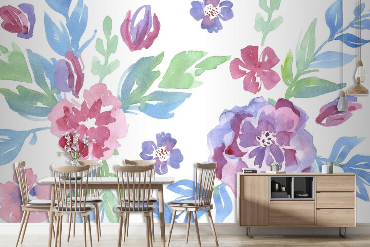 Fashionable Pattern In Watercolor Flowers Wallpaper Mural