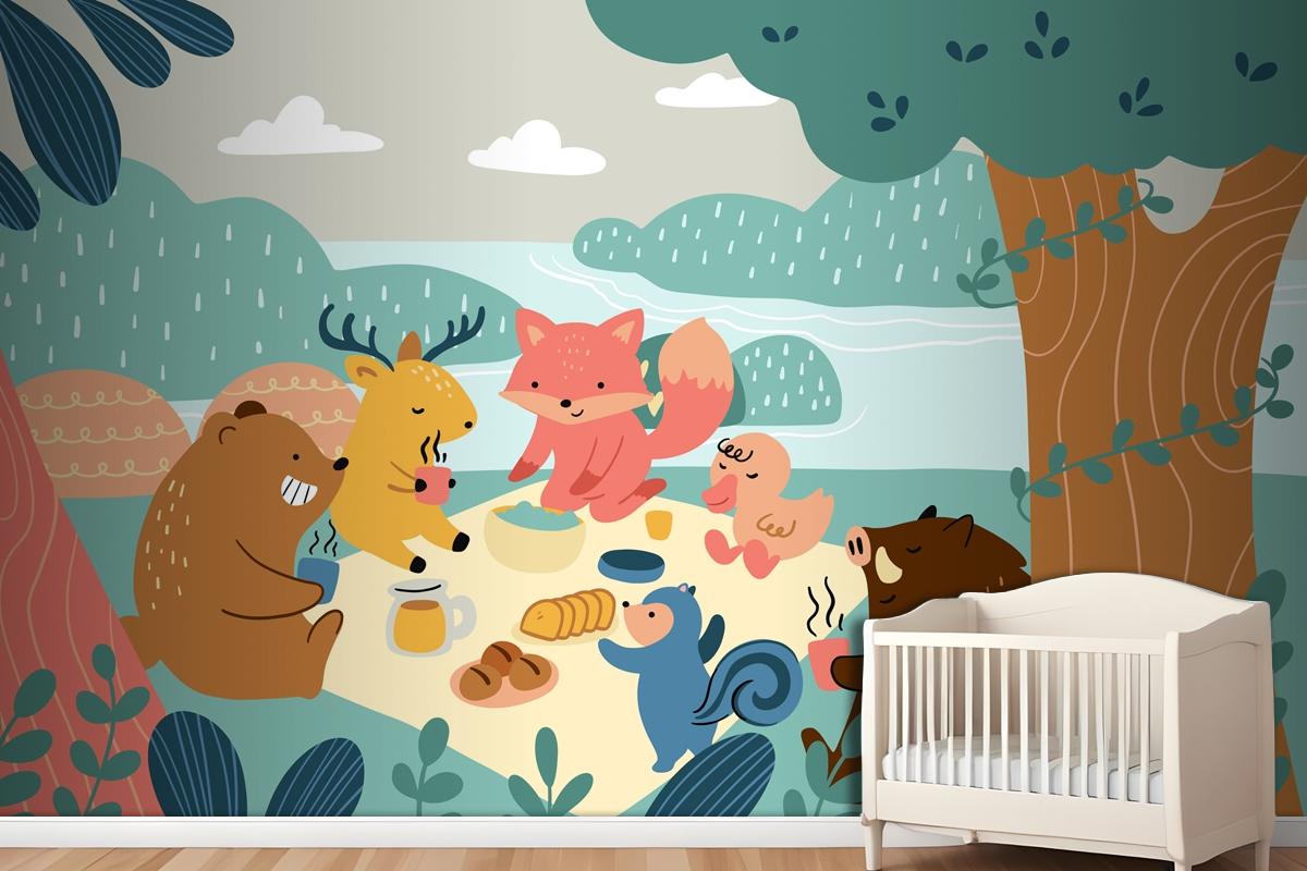 Flat World Animal Day Wallpaper Mural
