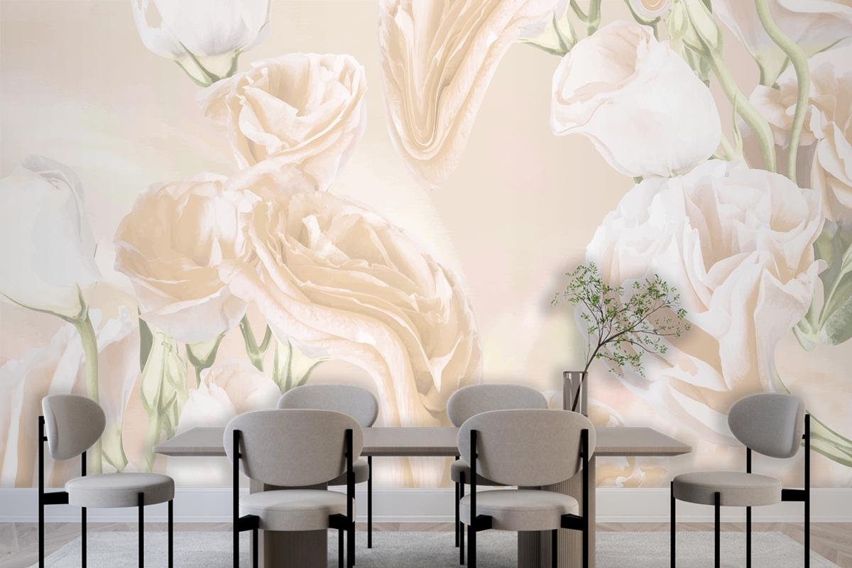 Floral Background Beige Rose Psychedelic Art Wallpaper Mural