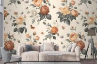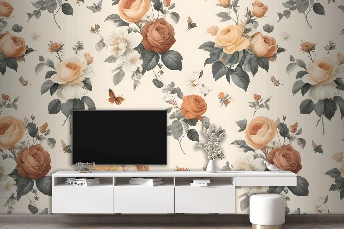 Floral Pattern With Various Types Of Roses Wallpaper Mural