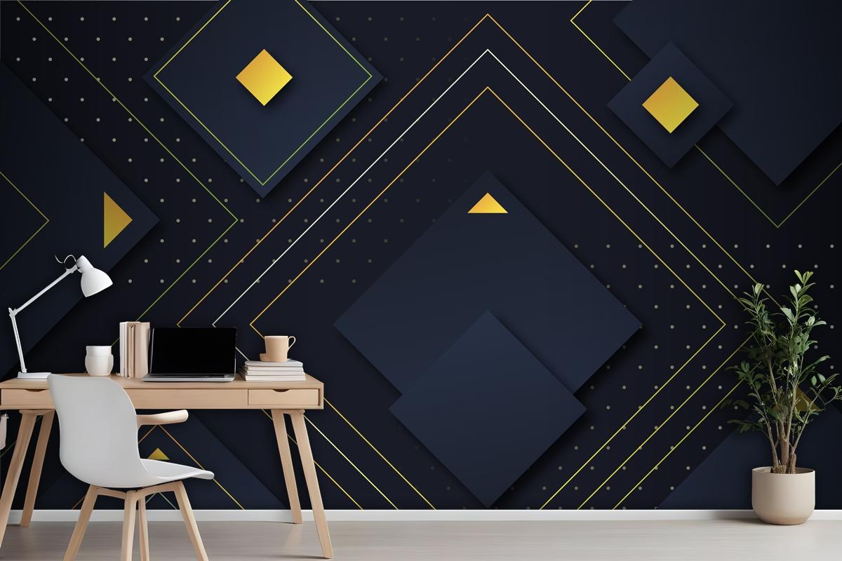 Gradient Geometric Shapes On Dark Wallpaper Mural