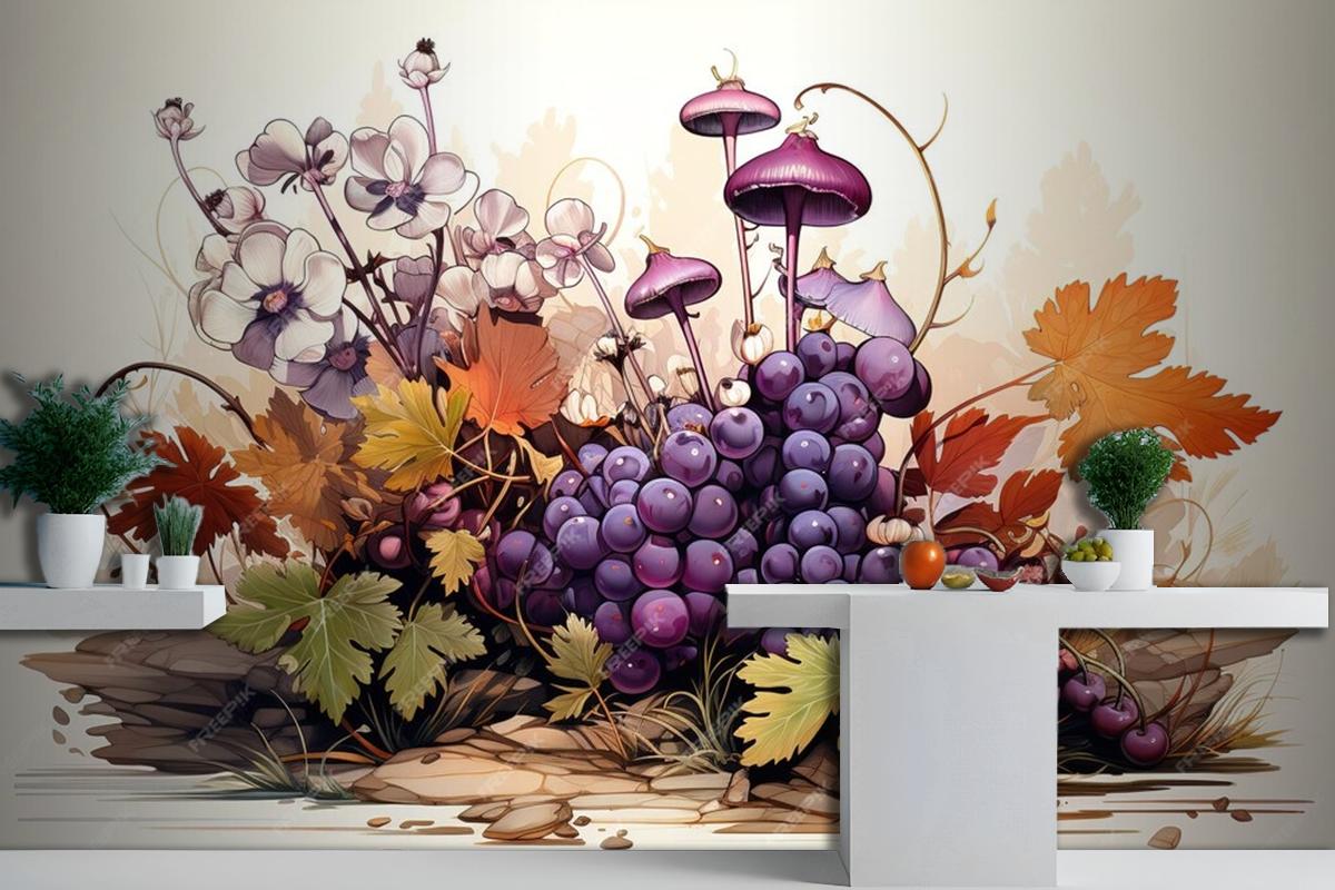 Grapes Seamless Pattern Fruits Background Watercolor Wallpaper Mural