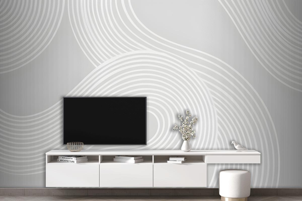 Gray Curvy Lines Modern Zen Garden Wallpaper Mural