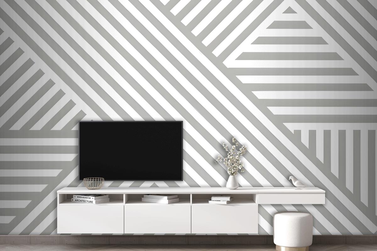 Gray White Diagonal Striped Pattern Wallpaper Mural