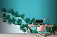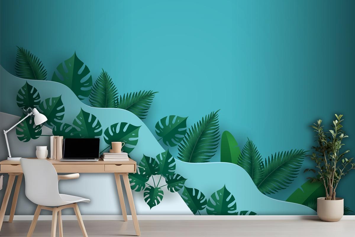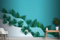 Green Leafs Or Foliage In Multi Wave Layer Wallpaper Mural