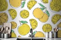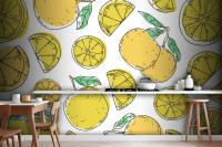 Hand Drawn Lineal Engraved Lemon Pattern Wallpaper Mural