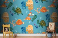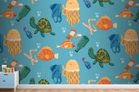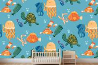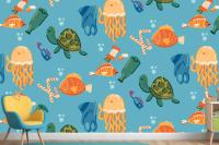 Hand Drawn Save The Oceans Pattern Wallpaper Mural