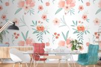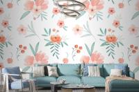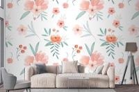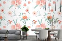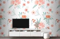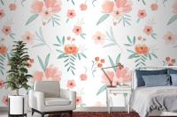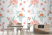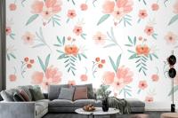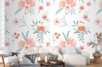 Hand Painted Watercolor Floral Pattern In Peach Tones Wallpaper Mural