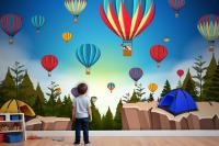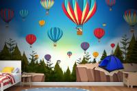 Hot Air Balloon In Nature Landscape Wallpaper Mural