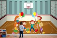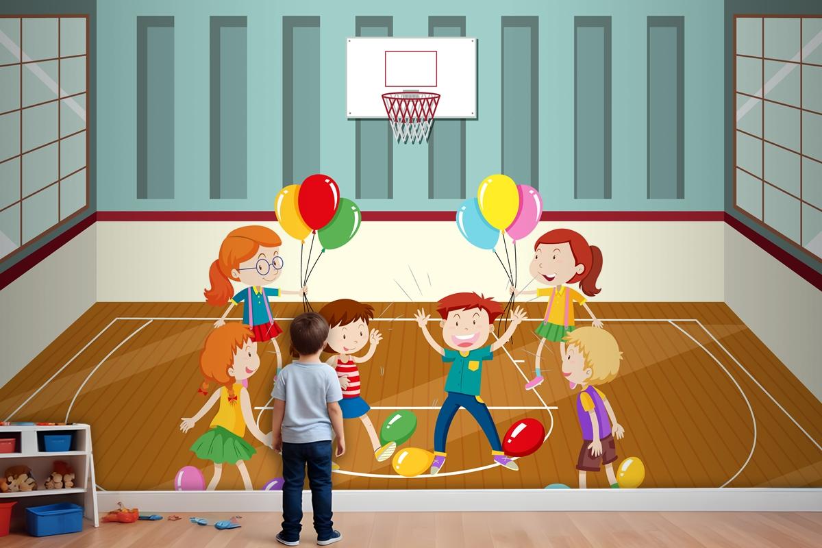 Kids Doing Physical Activity With Balloons Wallpaper Mural