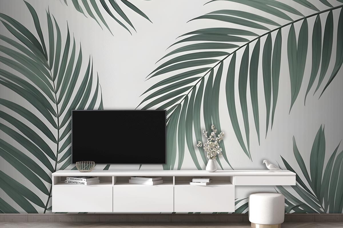 Light Background Palm Leaves Various Shades Green Wallpaper Mural