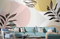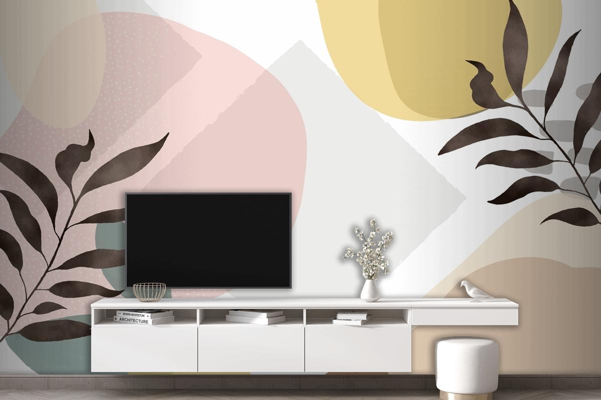 Minimal Hand Drawn Background With Plants Living Room Wallpaper Mural