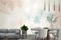 Minimalist Pink & Green Inky Tropical Wallpaper Mural