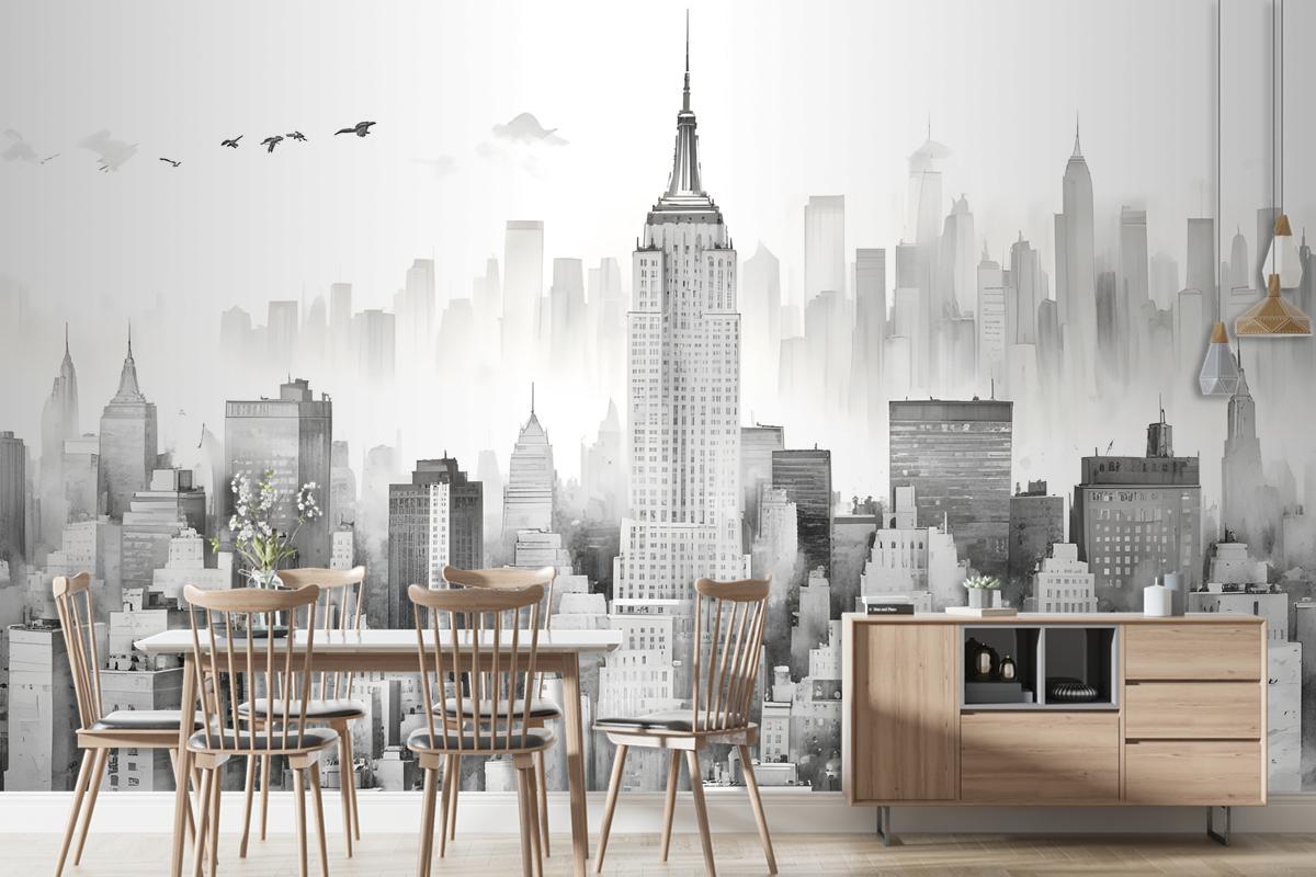 Monochrome Charcoal New York City Black And White Wallpaper Mural