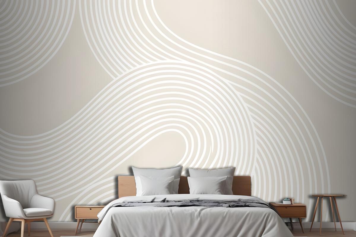 Neutral Curvy Lines Modern Zen Garden Wallpaper Mural