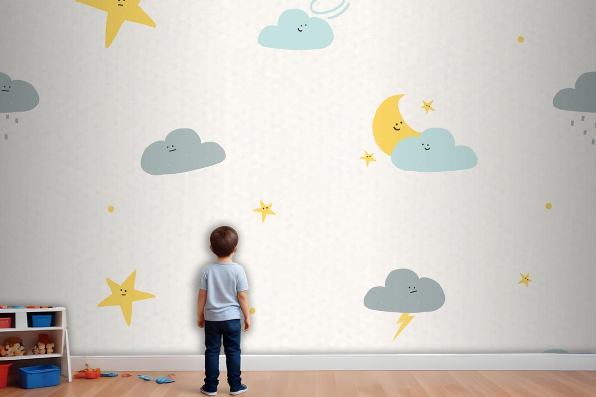 Night Sky Seamless Pattern Weather Doodle Background For Kids Wallpaper Mural