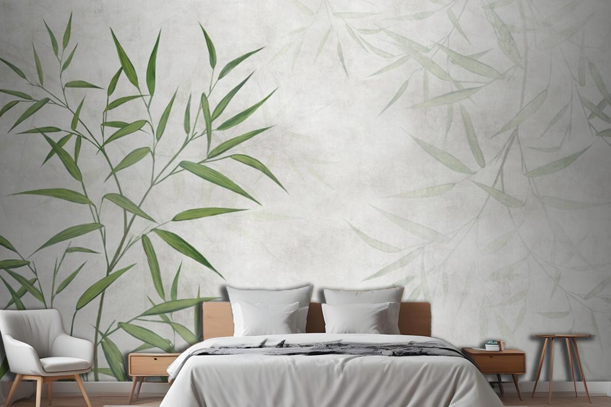 Painted Reed Bamboo Leaves On A Textured Background Bedroom Wallpaper Mural