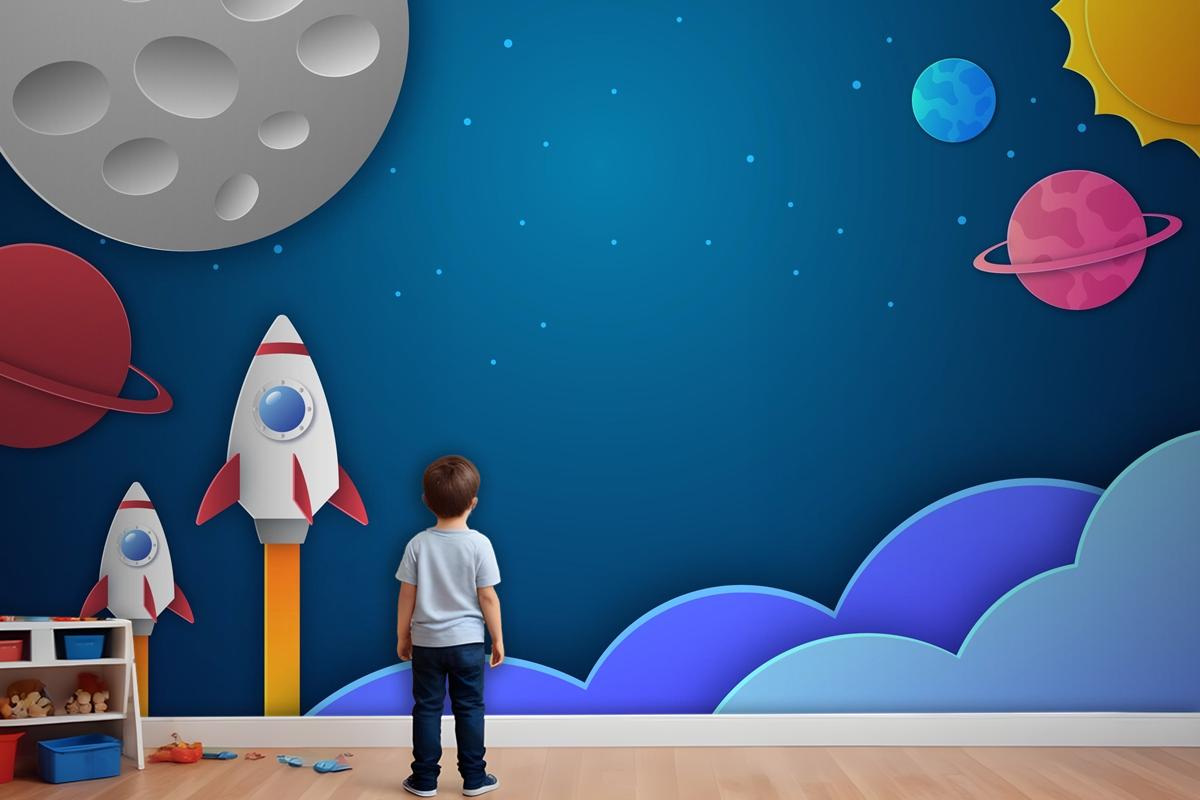Paper Style Galaxy Kids Boy Wallpaper Mural