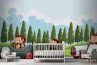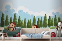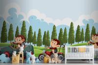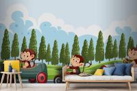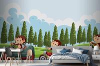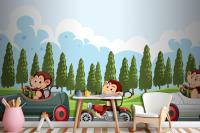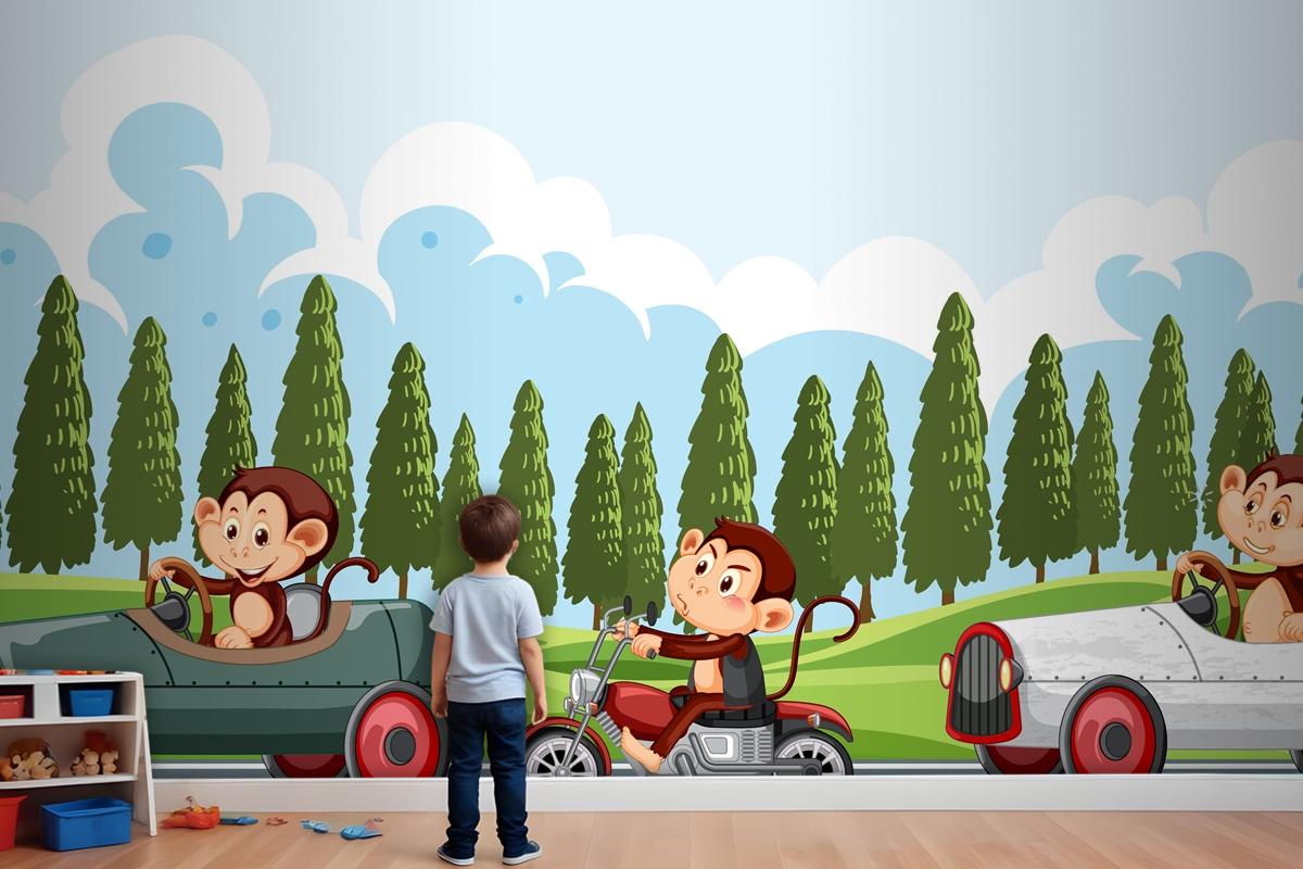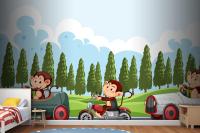 Race Track Scene With Monkey Racing Drivers Wallpaper Mural
