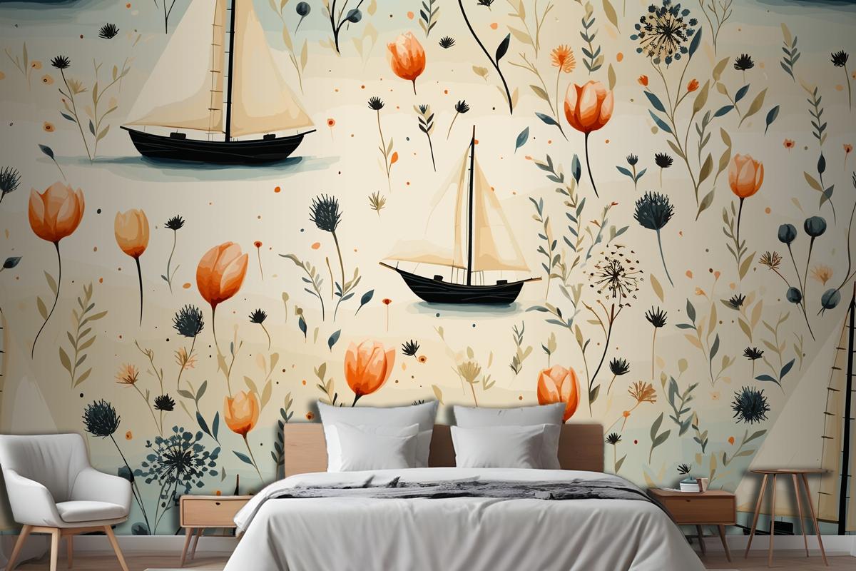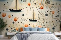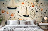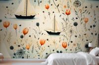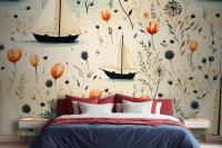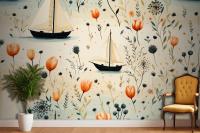 Sea Animals A Lighthouse And A Boat With Shells Starfish Bedroom Wallpaper Mural