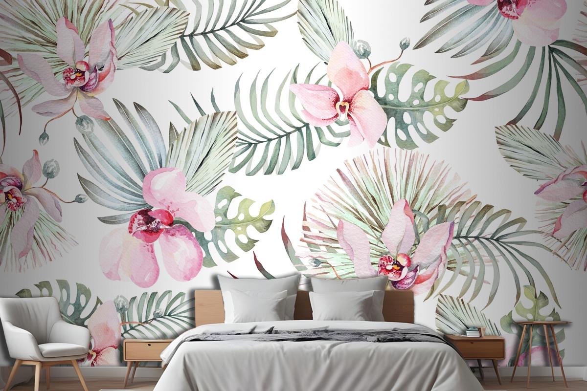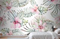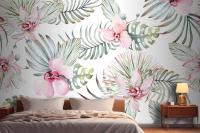 Seamless Pattern Of Tropical Plant Orchid And Flower For Fabric Bedroom Wallpaper Mural