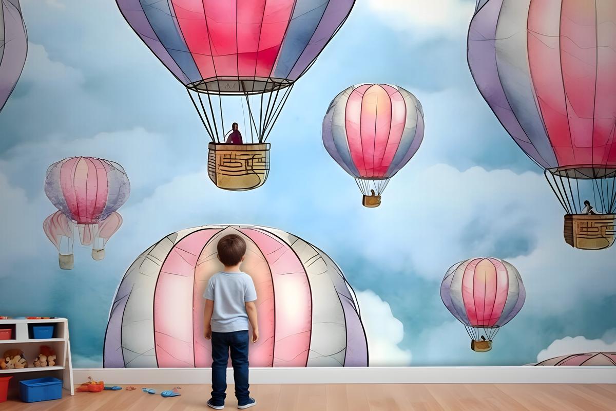 Seamless Pattern With Colorful Hot Air Balloons In The Sky Wallpaper Mural
