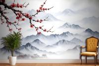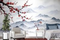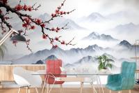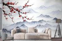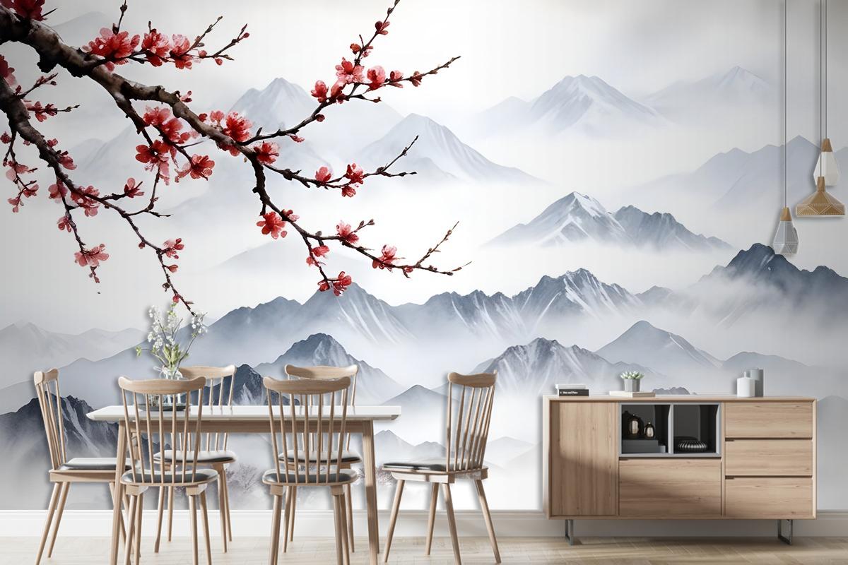 Snowy Mountainscape With Cherry Blossom Wallpaper Mural