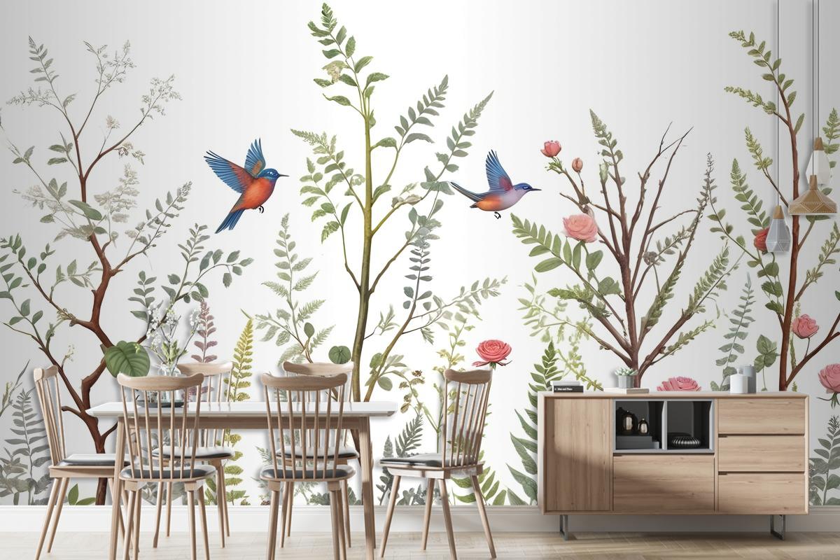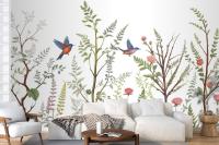 Spring Flower With Birds On The Trees Wallpaper Mural