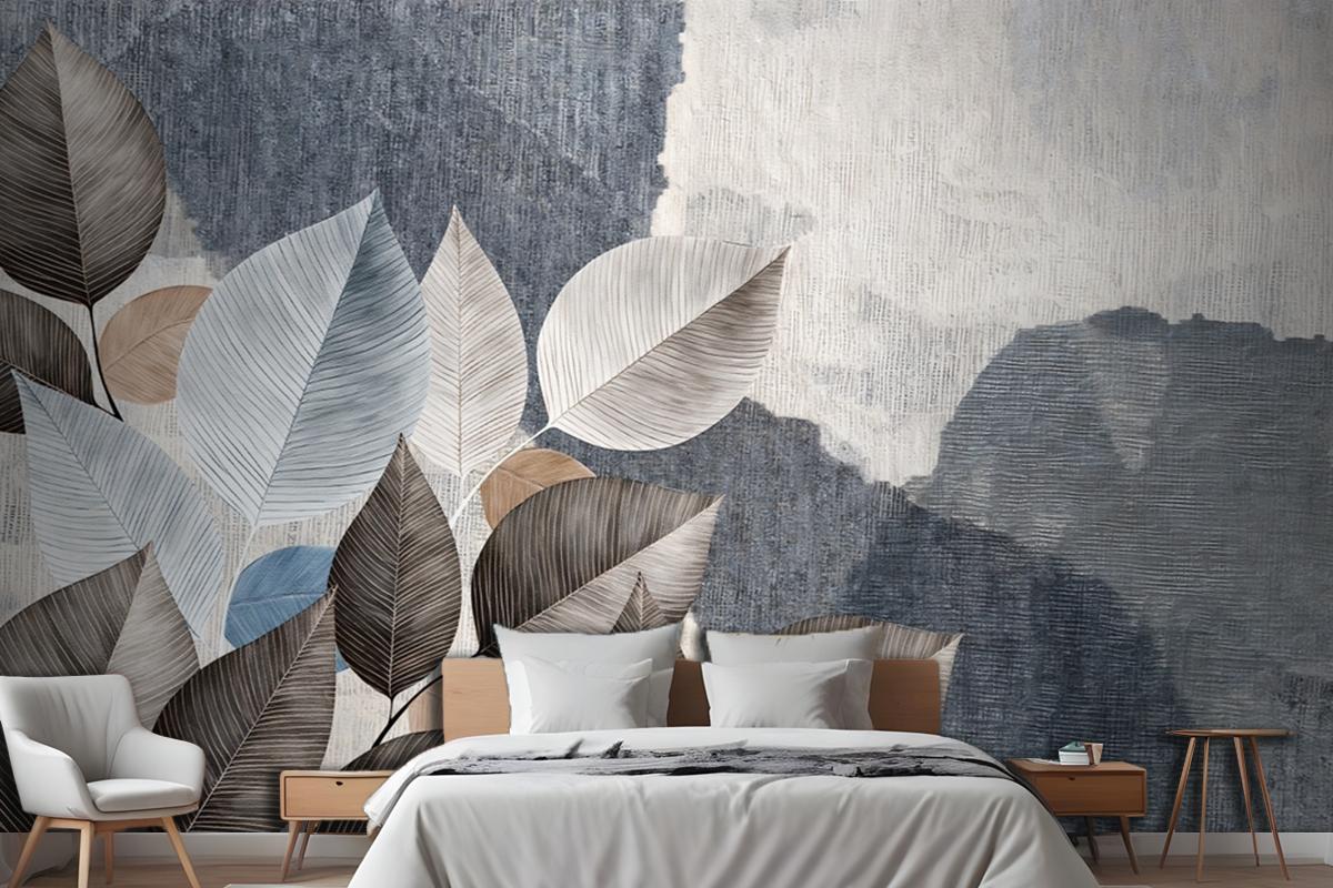 Textured Leaves In Coffee Tones Bedroom Wallpaper Mural
