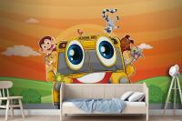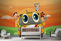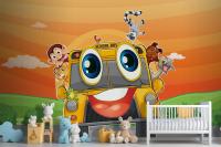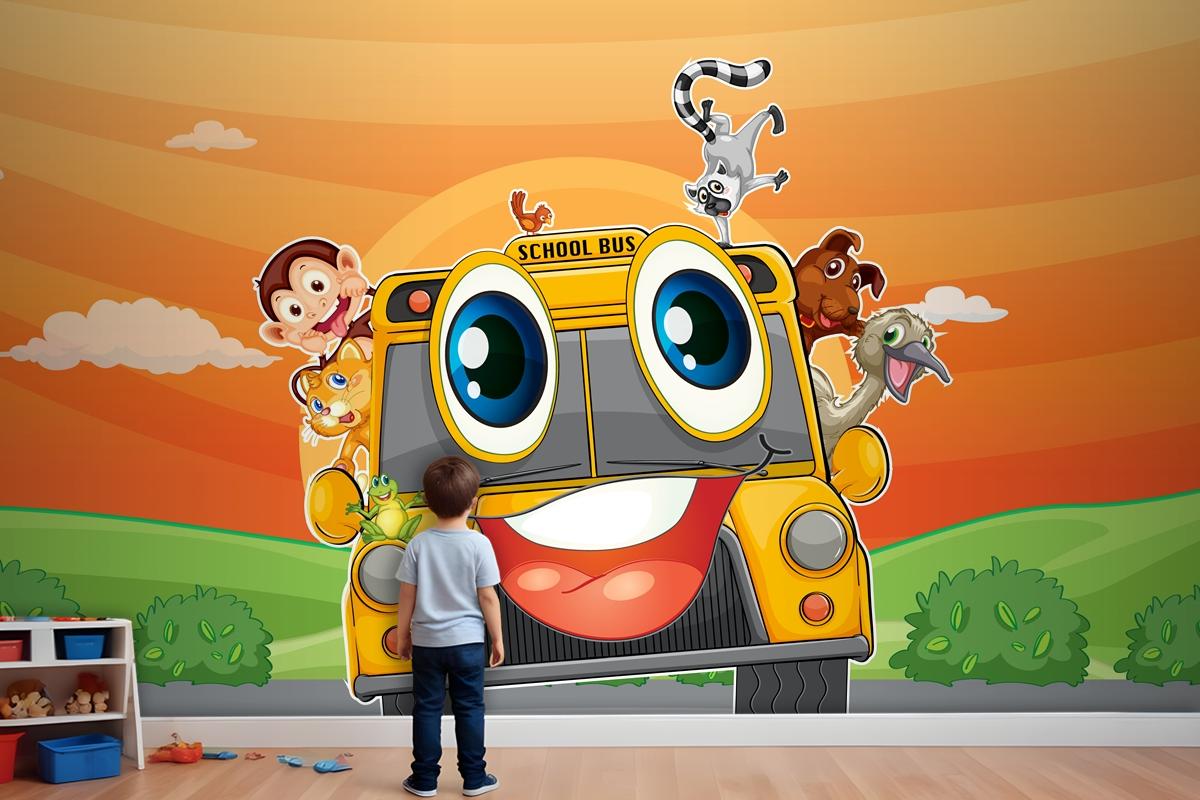 Various Animals In School Bus Wallpaper Mural