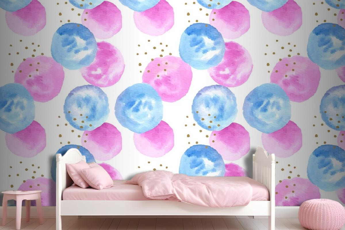 Watercolor Abstract Circular Spots Seamless Pattern Girl Wallpaper Mural