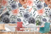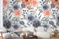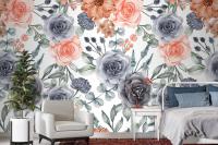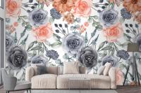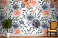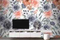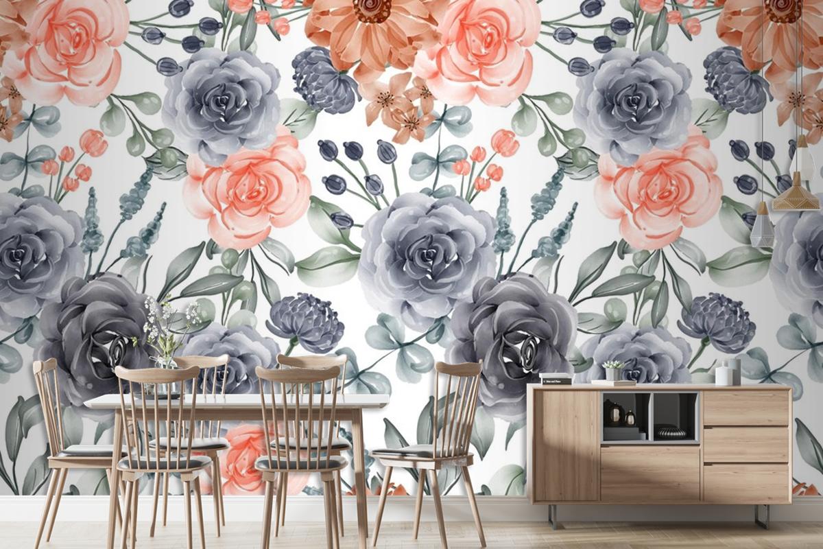 Watercolor Background Seamless Pattern Flower Navy And Peach Wallpaper Mural