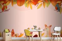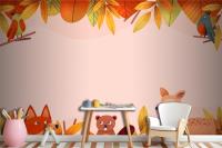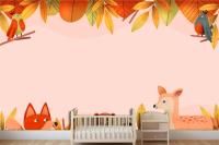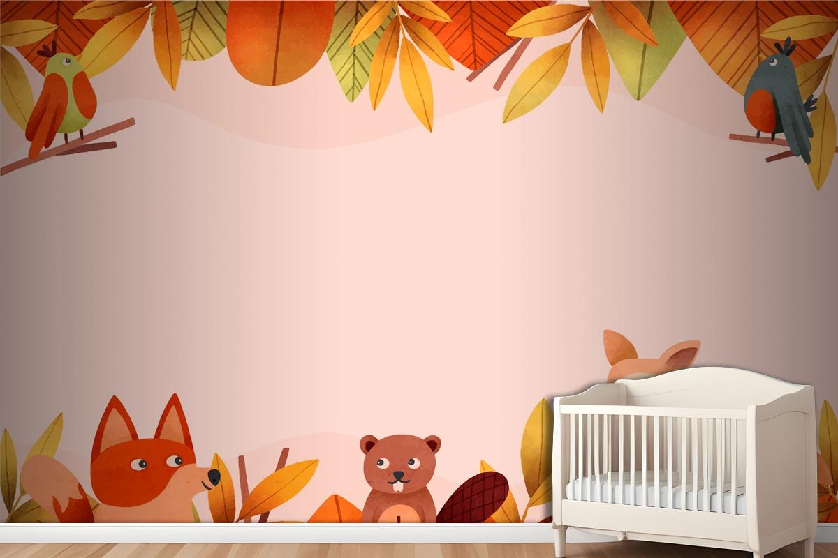 Watercolor Forest Animal And Leaves Wallpaper Mural