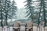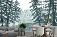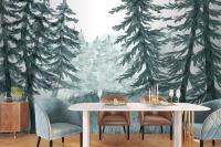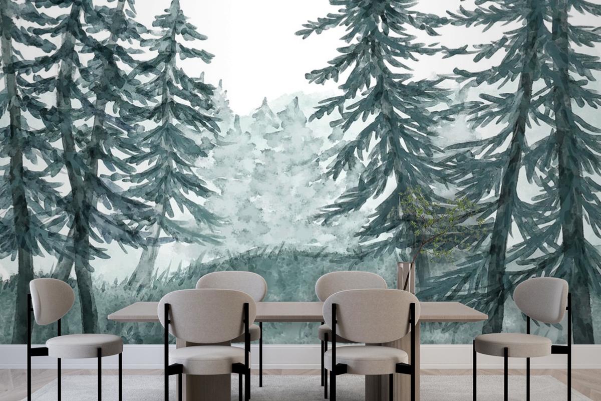 Watercolor Forest Landscape Dining Room Wallpaper Mural
