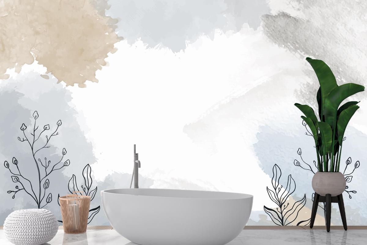Watercolor Hand Drawn Background With Plants Wallpaper Mural