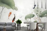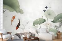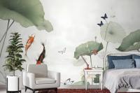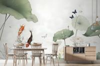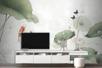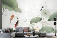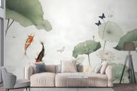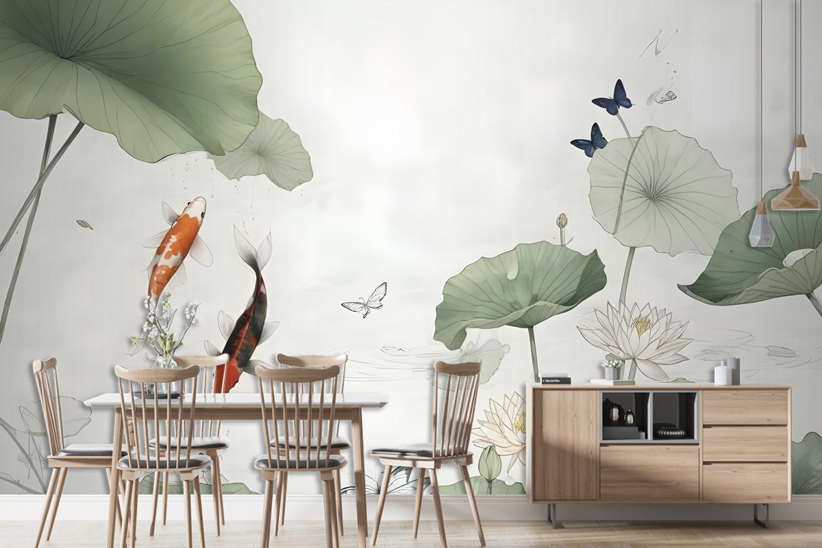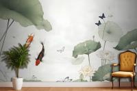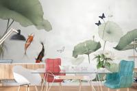 Watercolor Lotus Flower And Butterflies Wallpaper Mural